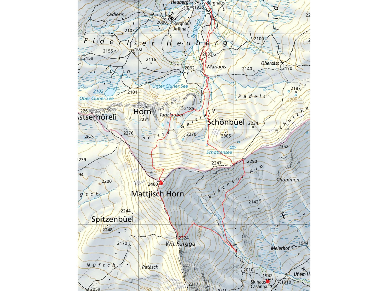 start auf 1935 müM, ziel mattjisch_horn, gipfel auf 2460 müM.
