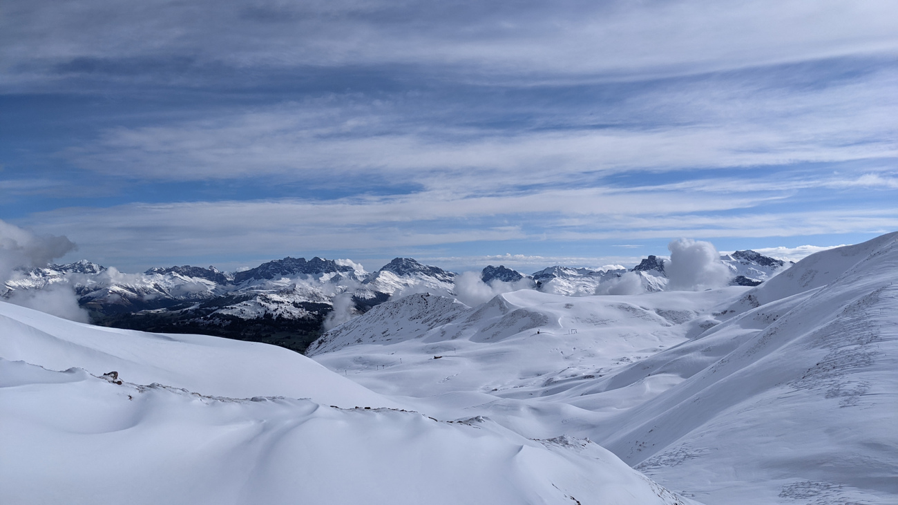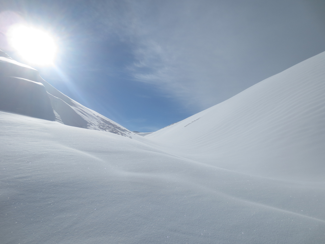 wunderbare frühlingstour mit pulverschnee, bei bestem wetter.