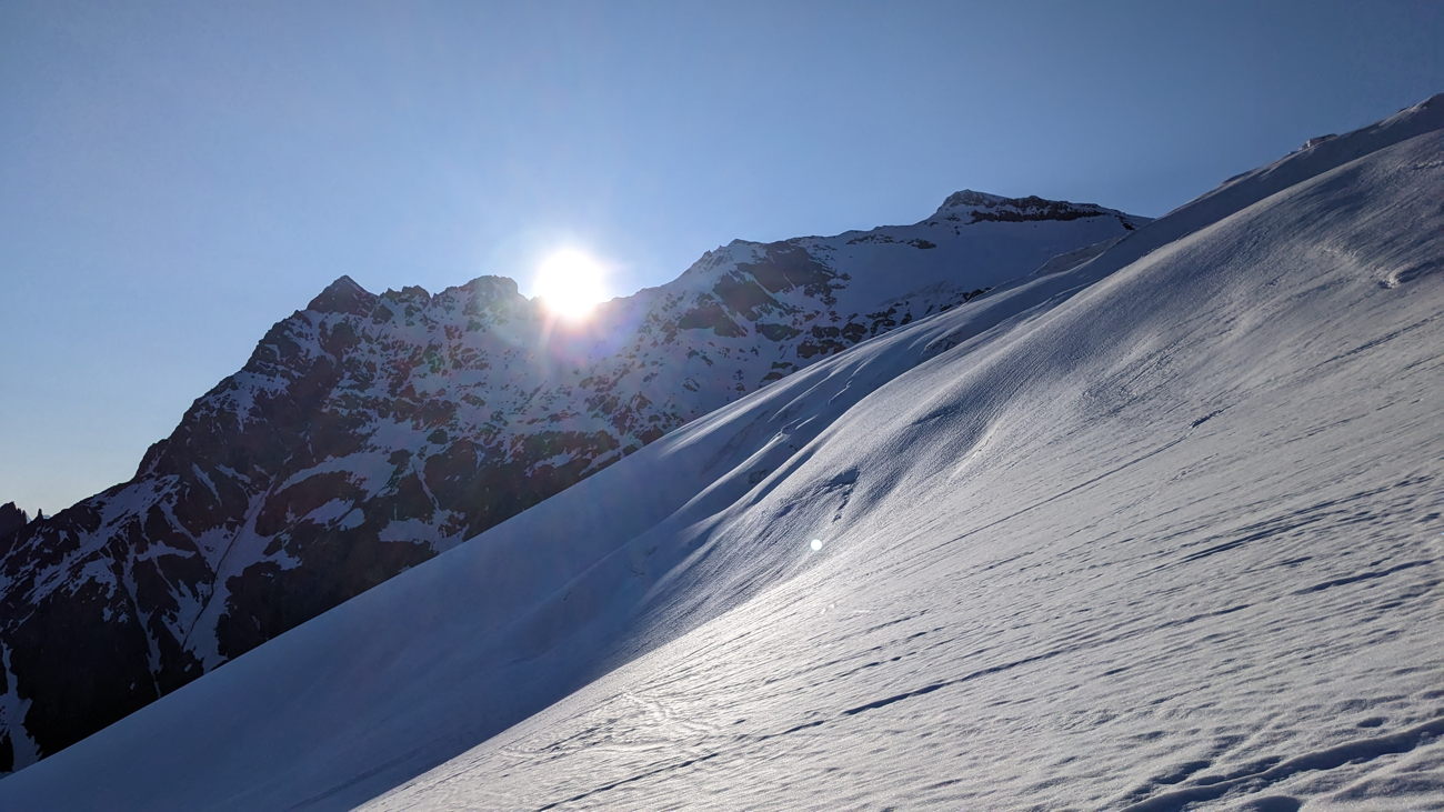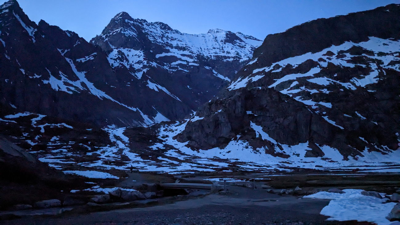 0515 uhr ablaufen beim parkplatz, richtung sustenhorn, ankunft auf dem