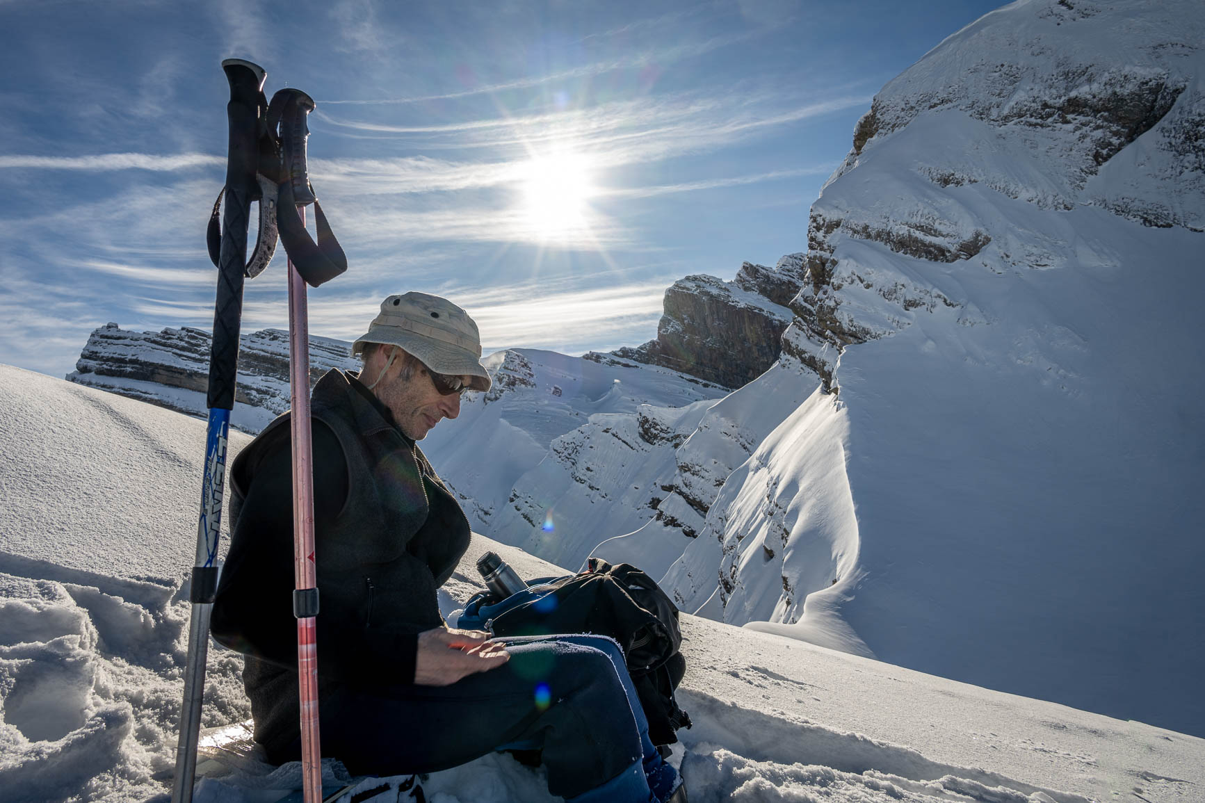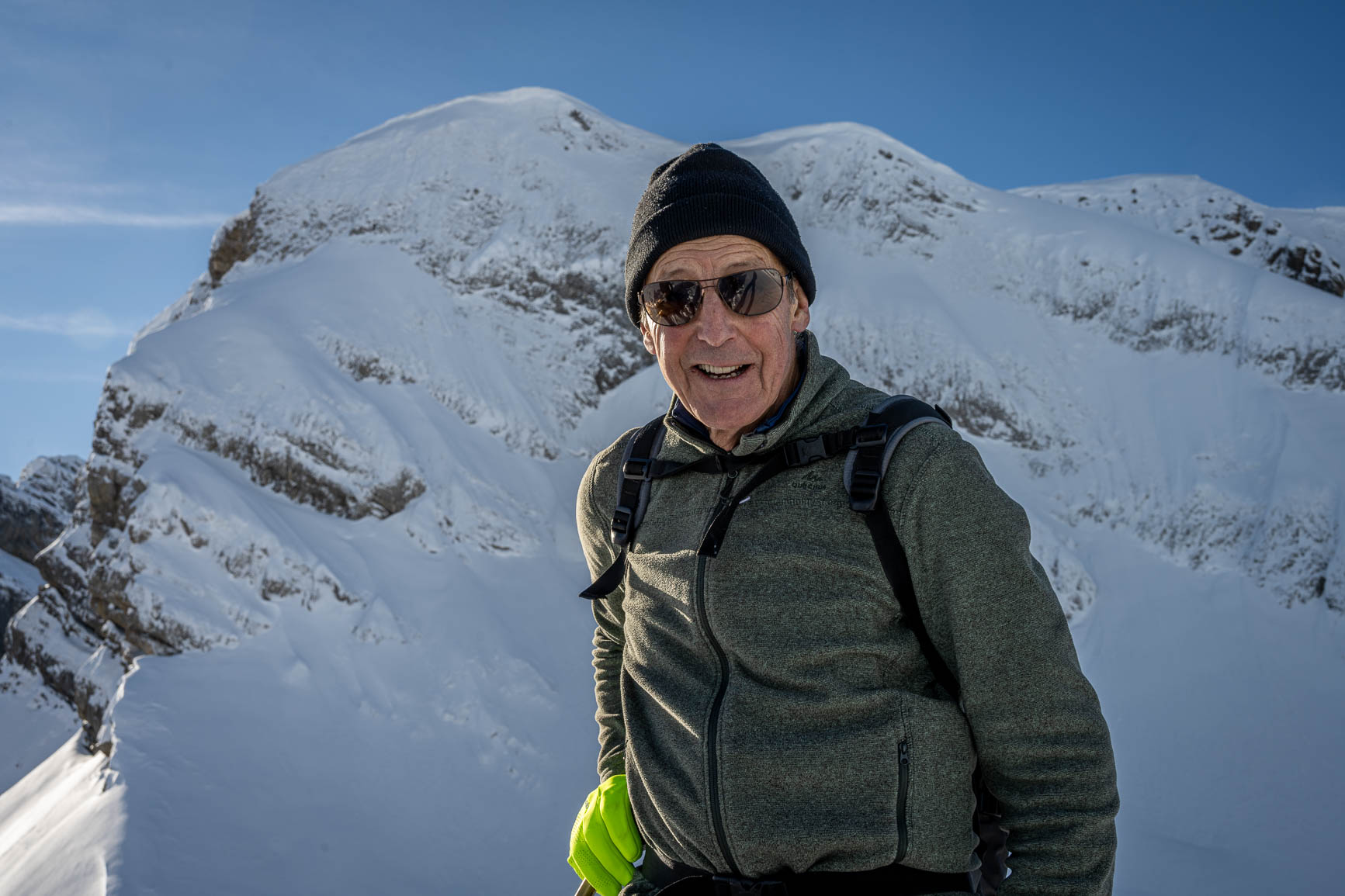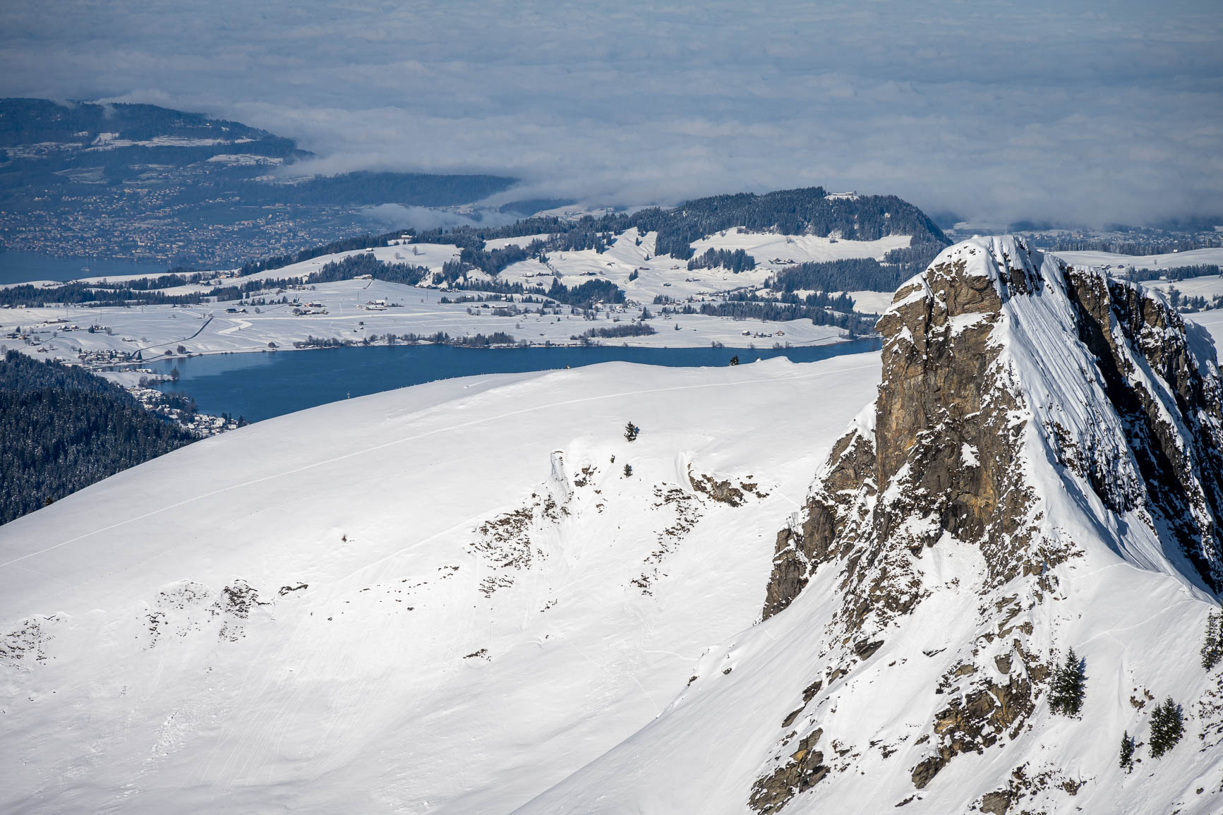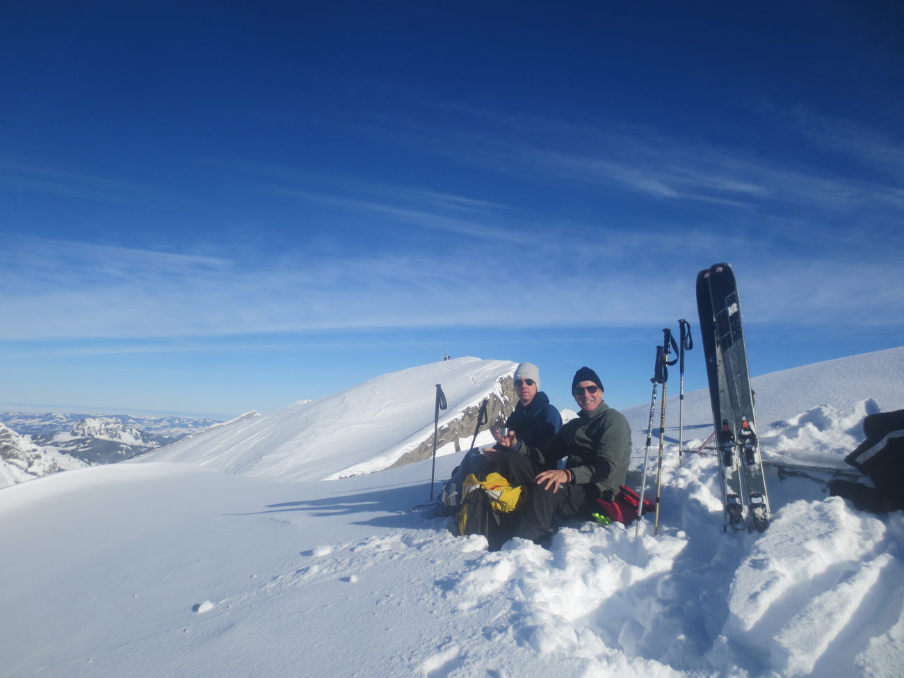 wendepunkt auf ca 2010 müM, mit blick auf das gipfelkreuz des rütistein,