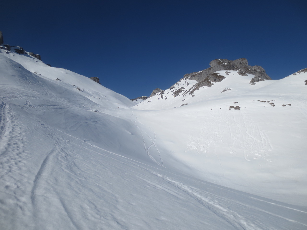 wolkenloser himmel, schneeverhältnisse saisongerecht.
